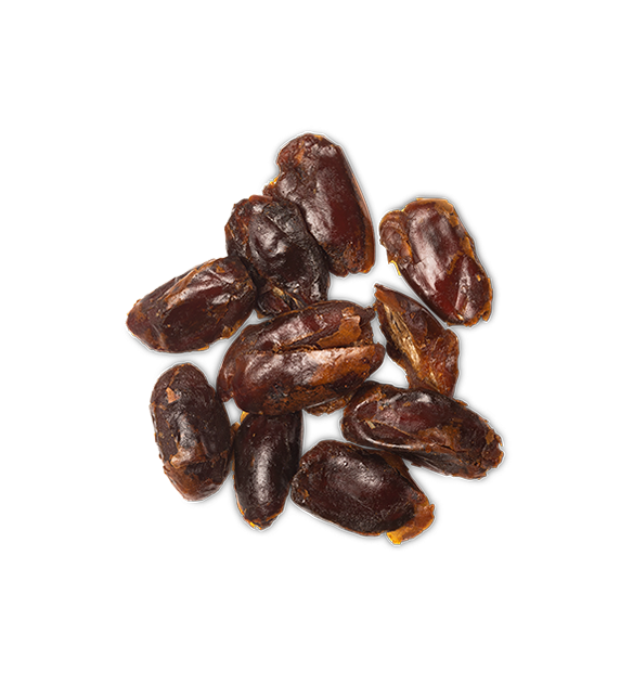 There are several kinds of dates, ranging from cylindrical to finger-shaped and varying in sweetness, colour, and texture. Dates are generally around 50% sugar and contain fibre, as well as some protein, vitamins, and minerals. Palms begin to bear fruit at around 4-5 years and are at their most fruitful at around 10-15 years of age, producing up to 80kg of dates each per year.