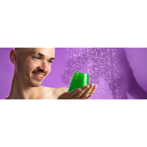 - بفضل مستخلص الأعشاب البحرية الموجود في كل من الهلام وعلكة الاستحمام، يتم علاج البشرة بالفيتامينات أ وسي وهـ لتهدئة البشرة وتغذيتها.