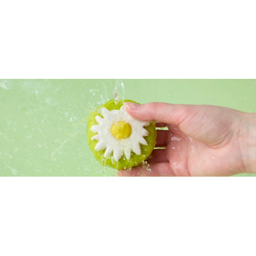 Crumble up beneath running water for bountiful, botanical bubbles.