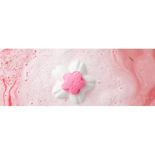 - The salted sakura flowers hidden inside this bath bomb make it look like you’re bathing in a cup of traditional cherry blossom tea as they disperse throughout the water.