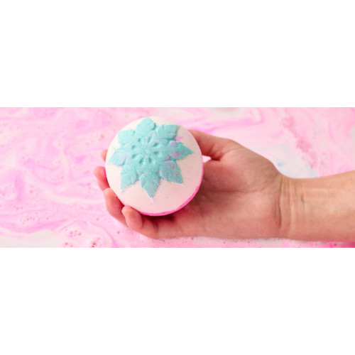 احضروا المتعة الى المغطس مع رائحة سنو فيري الحلوة التي تفوح منها رائحة علكة البابل غم! تتفتح طبقات من اللون الوردي والأبيض في موجات من اللمعان المتموج بينما تطلق املاح المغطس رائحة الحلوى الحلوة الأيقونية التي لا تقاوم. اختر القليل منها لتدوم خلال أروع وقت في السنة لأنها تأتي فقط في العطلات!