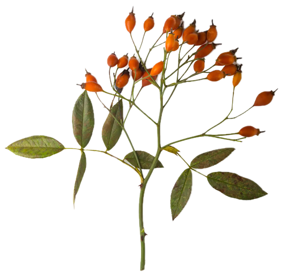 The Rosa canina plant, or dog rose, is a wild species of rose that thrives alongside country footpaths. After flowering, the plant grows small fruits of a vibrant red colour that enliven winter’s leafless landscapes. Called rose hips, these fruits have a variety of uses, culinary and medicinal.